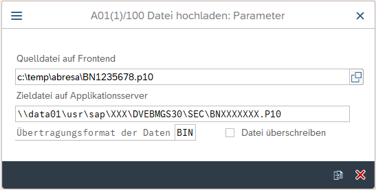 Upload via TC CG3Z Datei auf SAP-Anwendungsserver hochladen