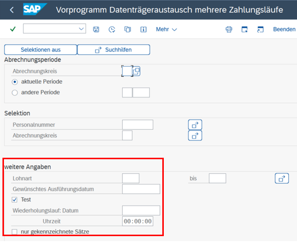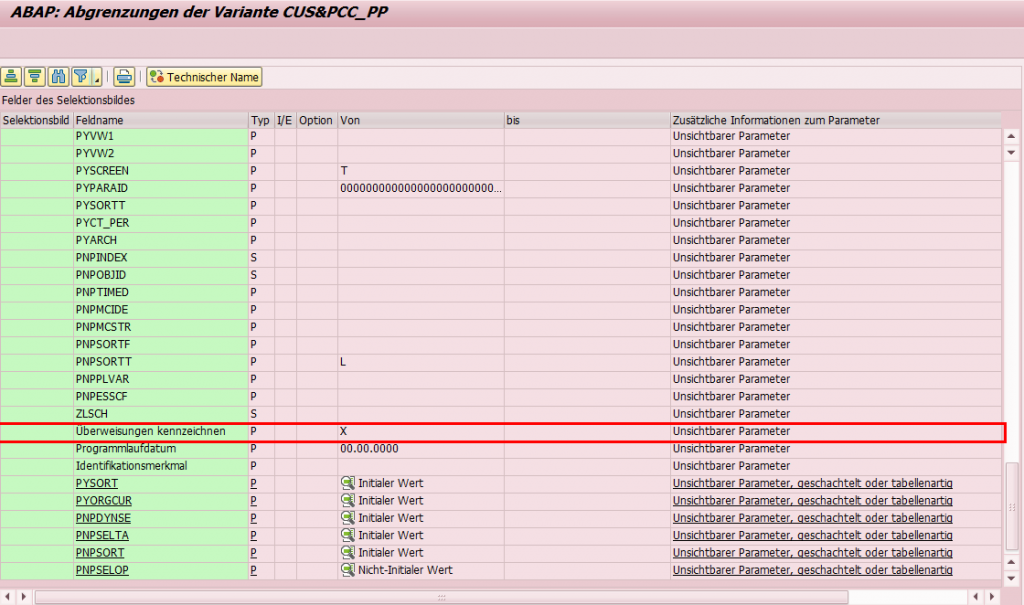 Abbildung 1: Selektionsbild vor der Änderung – der Parameter „Überweisungen kennzeichnen“ ist sichtbar.